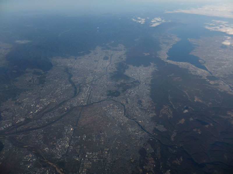 海と山に挟まれた僅かな平地に市街地が密集するのが良く分かる。