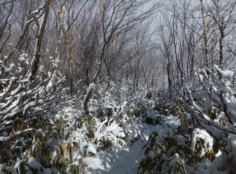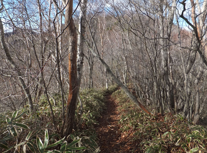 稜線に出ると熊笹の快適な登山道。