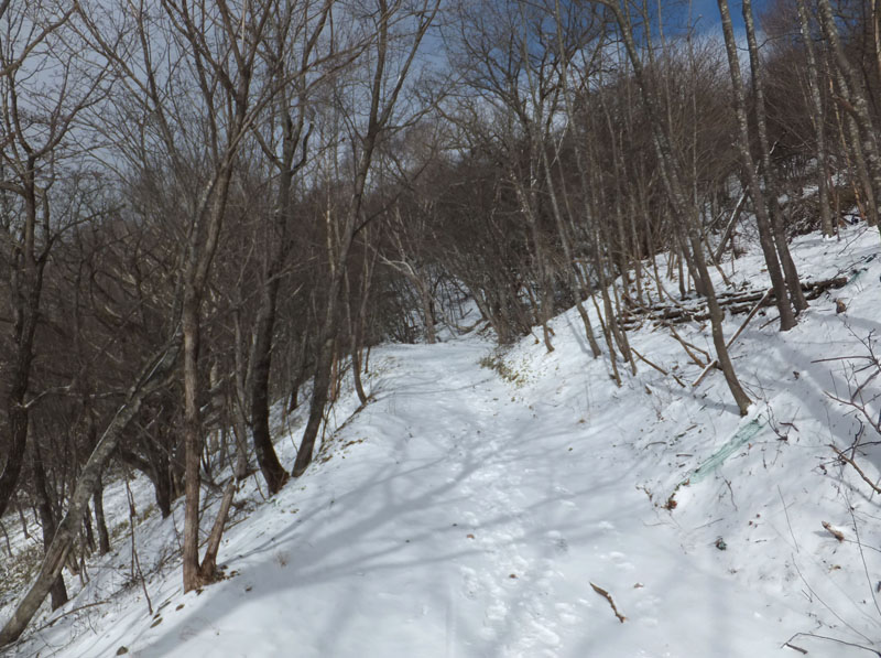 道路にも標高1200m以上から積雪があったが、登山道も完全に雪となっている。