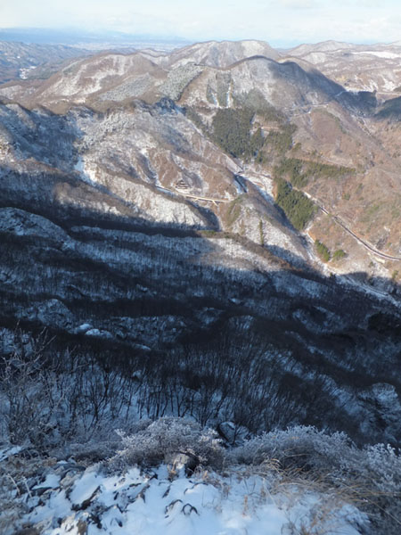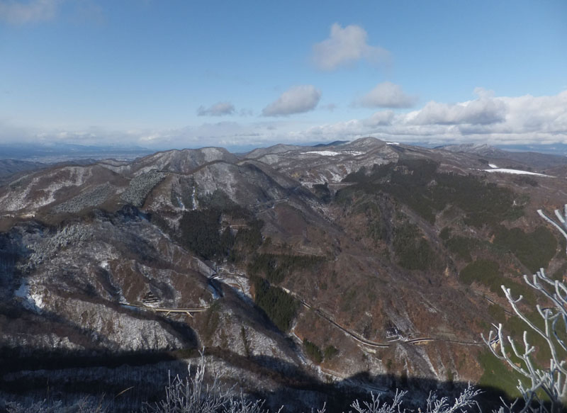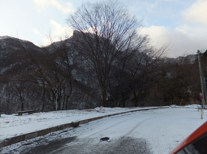 ノーマルタイヤ+チェーンでは山道は限界、いったん撤退する。