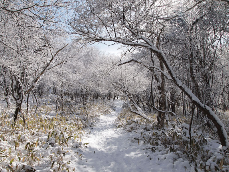 頂上台地(船のデッキにあたる)まで出ると一気に雪景色。