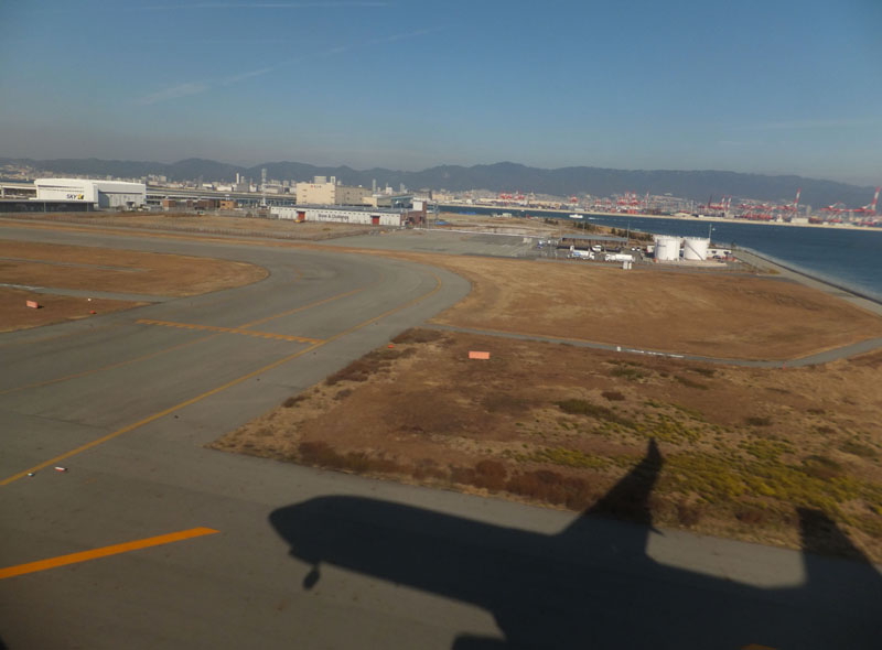 神戸空港へ。機体の影が見えるのがかっこいい。