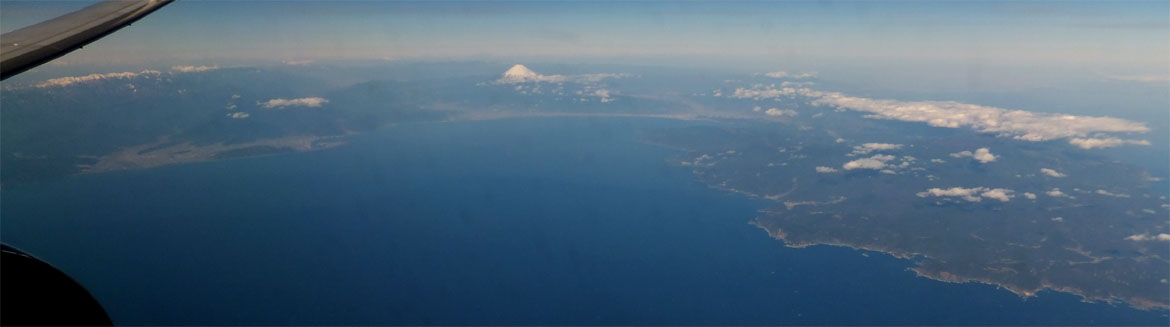 駿河湾・伊豆半島・富士山。ワイド写真だとなかなかいい感じだ。