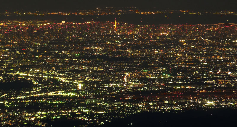このあと静岡の市街地の光がかすかに見える。