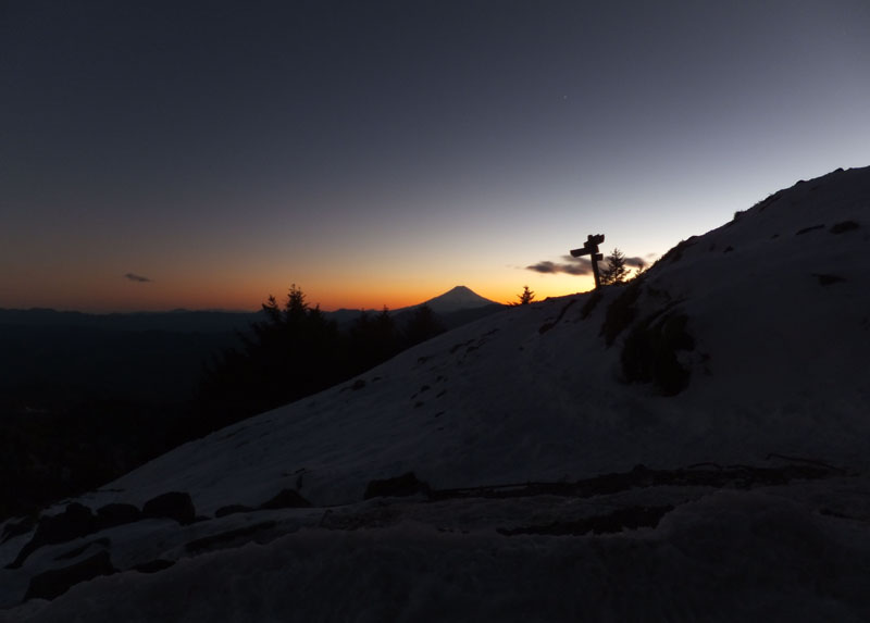 下界の灯りがともっているが、西の空にはまだ残照が。