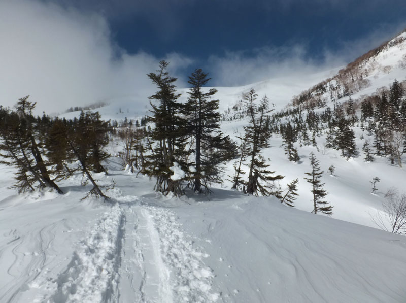 トレースは尾根状になっている部分についているためおそらく大丈夫だが、