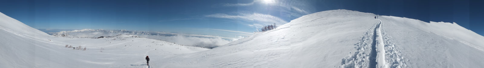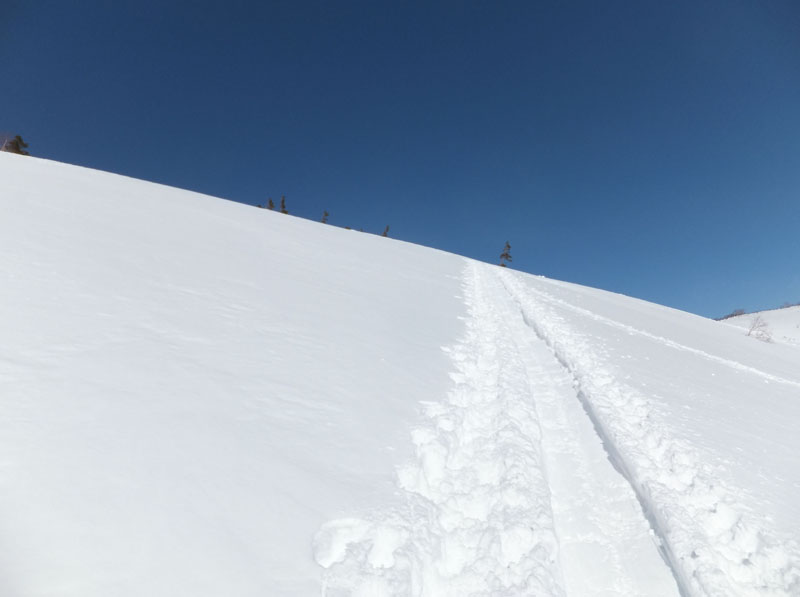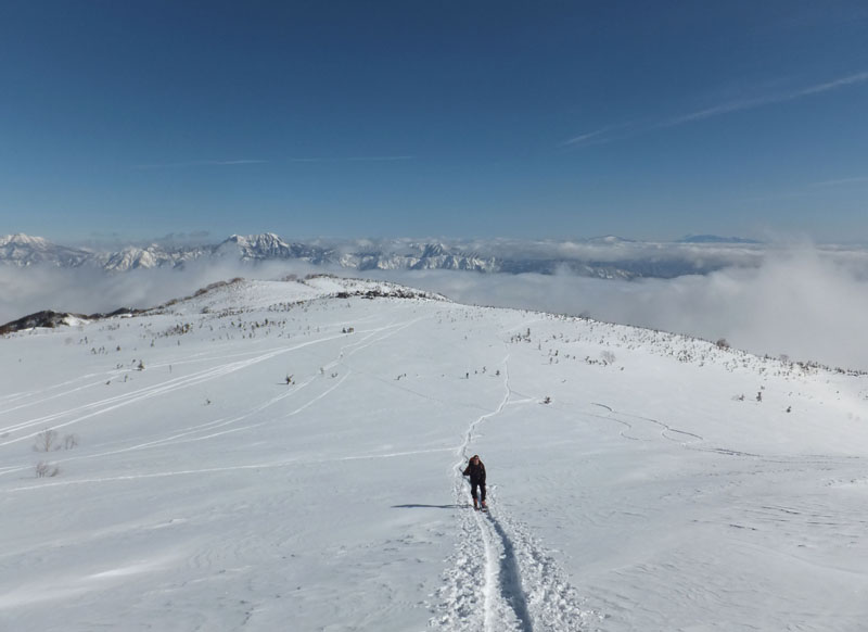 ゲレンデトップからはラッセルしながら標高差800m登っているため、