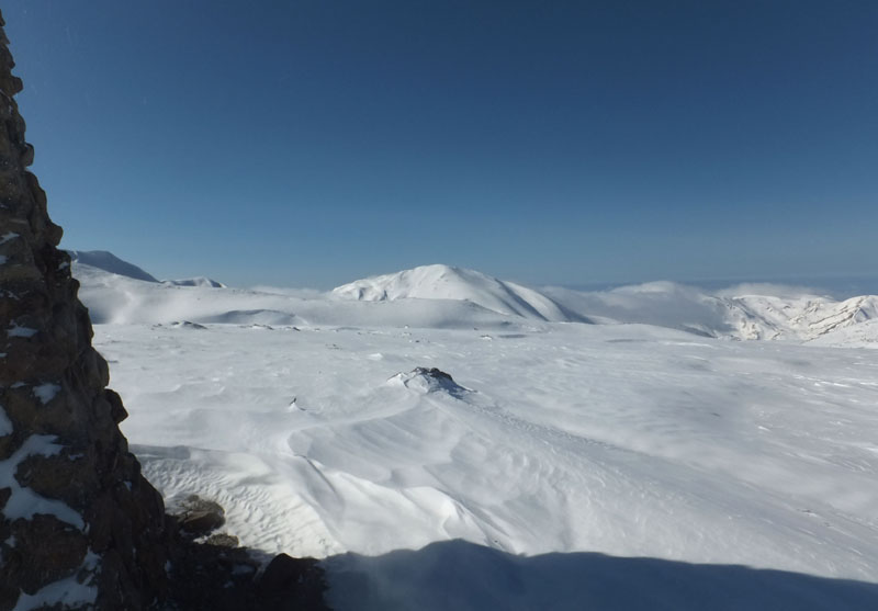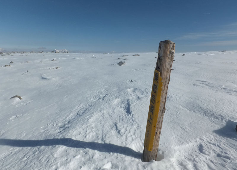 標高2200m弱の広い雪原で、視界がないときは要注意。