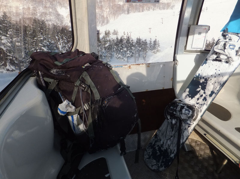 疲れたためいったんゴンドラで下り、山装備を解除する。