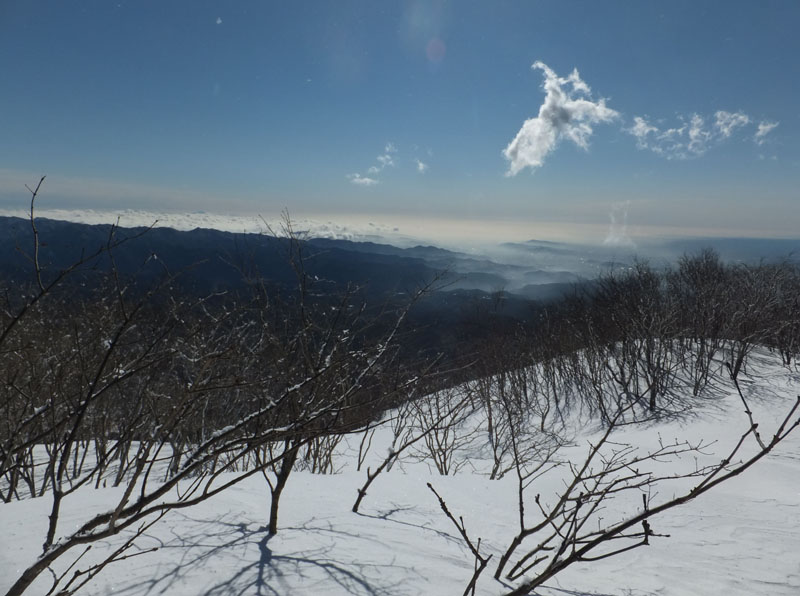 関東平野は薄い雲に覆われており霧になっているようだ。