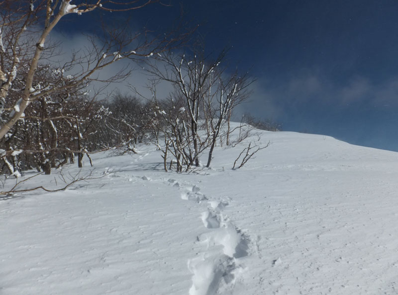 地蔵岳へはトレースはなく、30cm〜60cmくらいのラッセルになり大変しんどい。