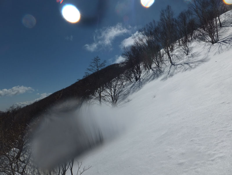 登るにつれ雪は深くなり、時折腰以上まで潜るようになったので撤退する。