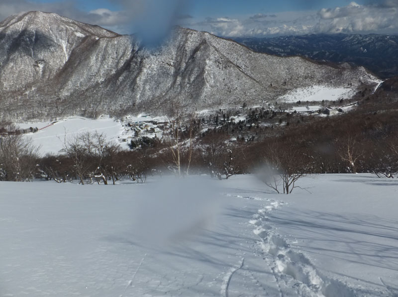 予想通り武尊山くらいまでは冬型の雲に包まれている。