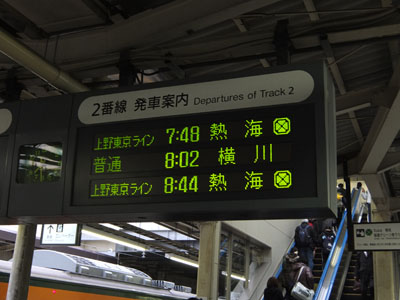 高崎駅からは熱海行きの電車が出ておりすごい。