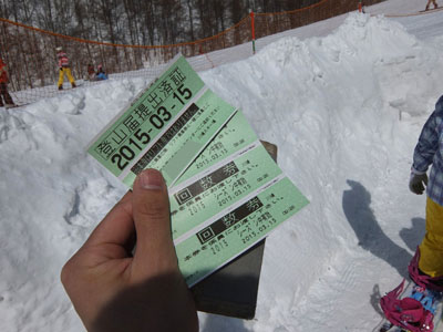 リフトは2本乗継×往復=4回券を購入(1800円)。