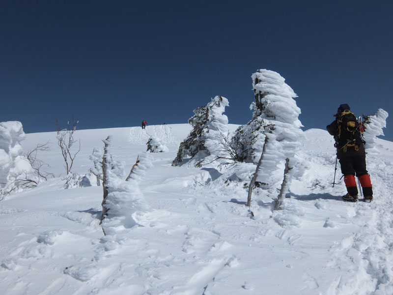 大きいものでは1トンはありそうな樹氷が崩壊したら死亡事故になりそうだ。