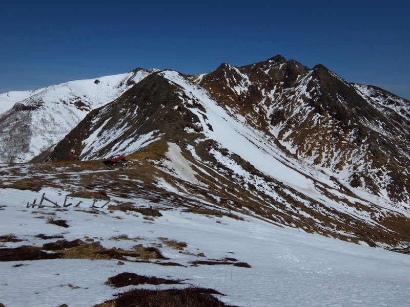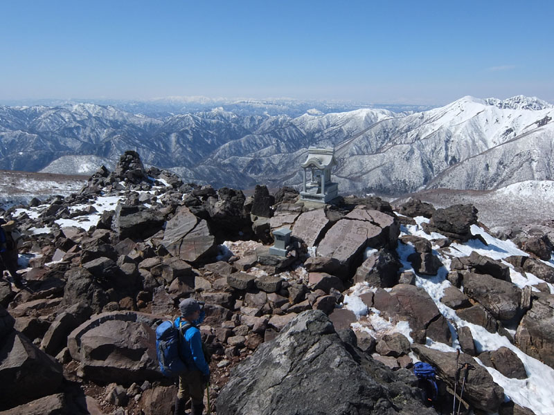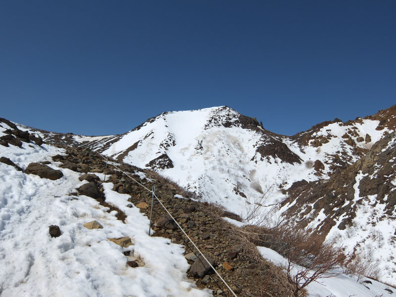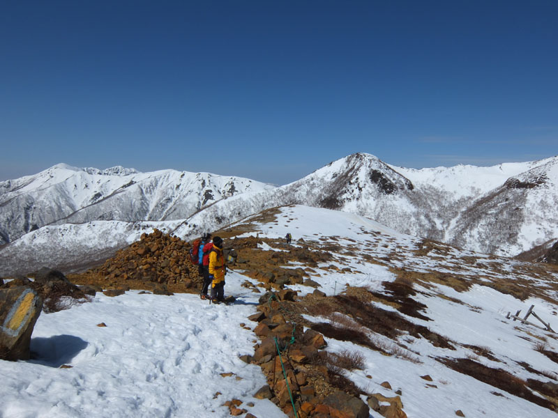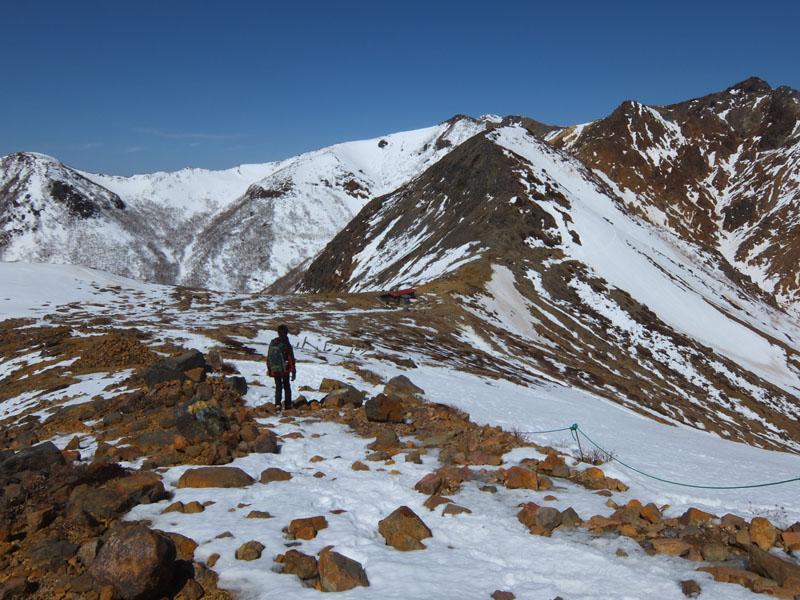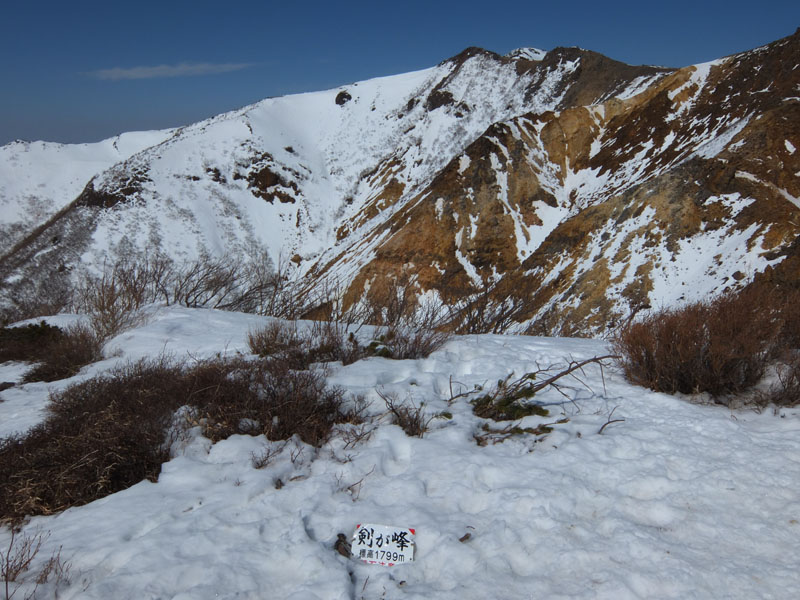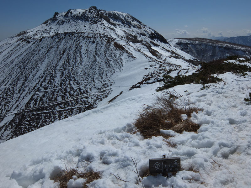 しかし剣ヶ峰を尾根通しで登るのも雪が減ってきて辛くなってきた。