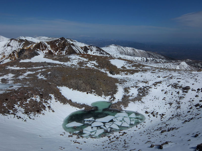 火口の窪地には水が溜まっている。