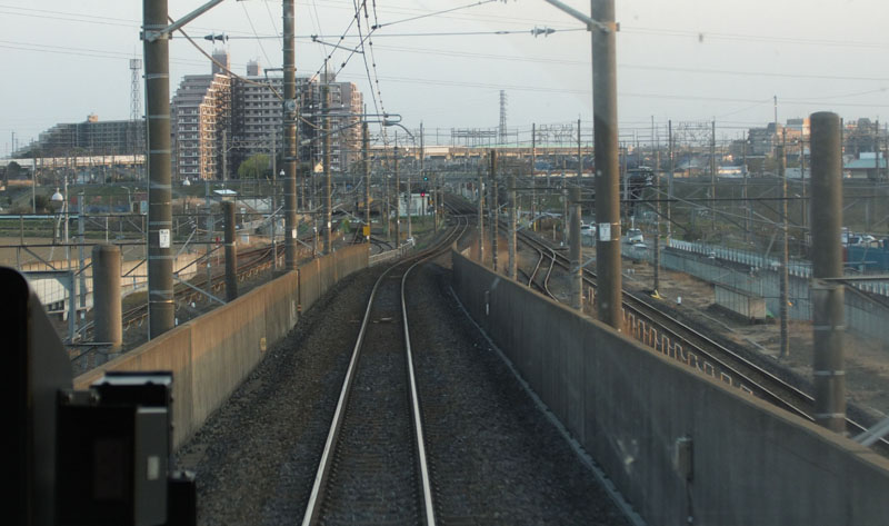 途中で新幹線に追い抜かれる。