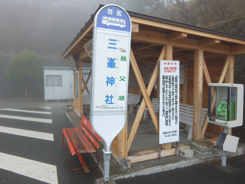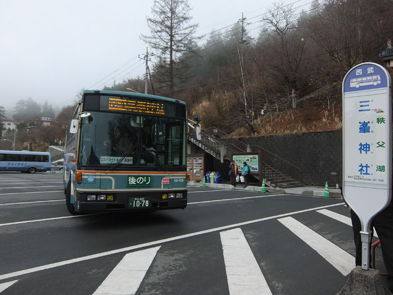 ここからバスで三峰神社。
