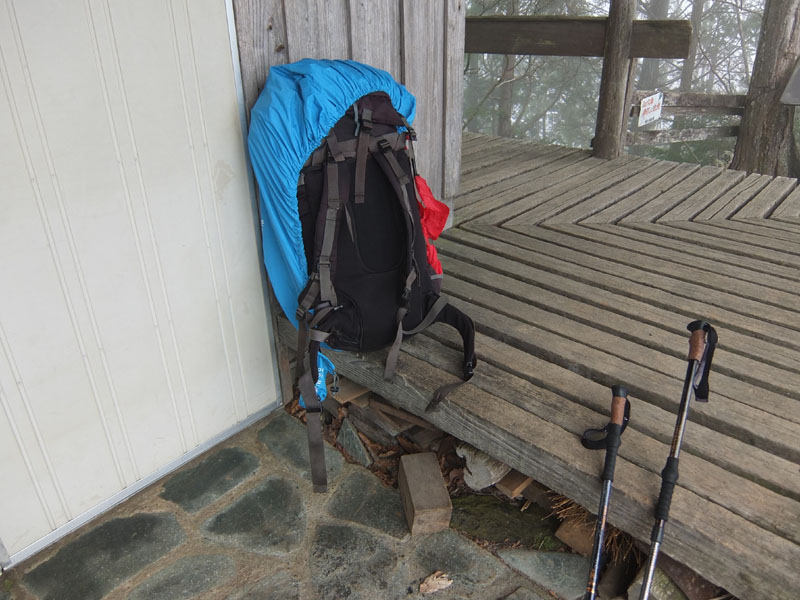 雨ではないとはいえ、天気が悪いので避難小屋のほうが安心だな。