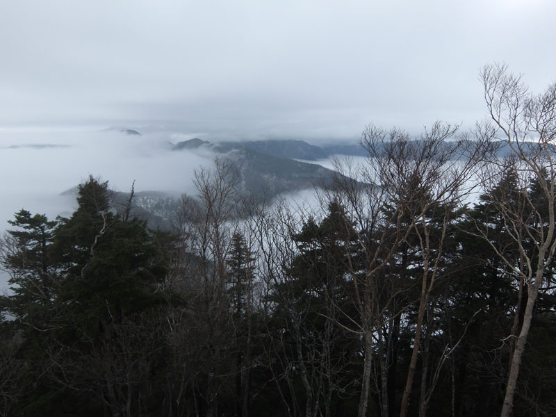 三峰神社のかなり手前、1300mで雲海に突入。