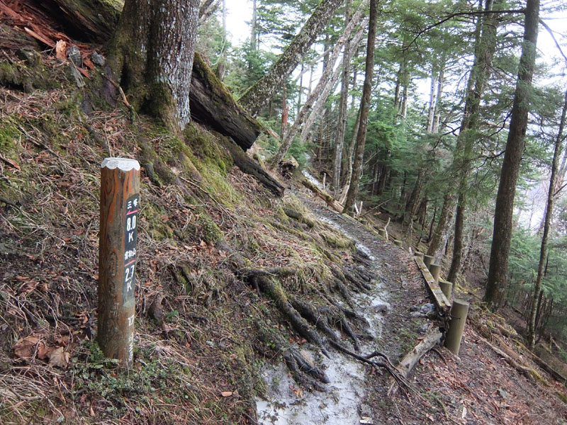 途中のトラバースでは雪が残っており要注意。