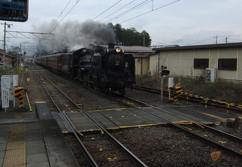 途中ではSL列車と交換する。なかなかかっこいい。