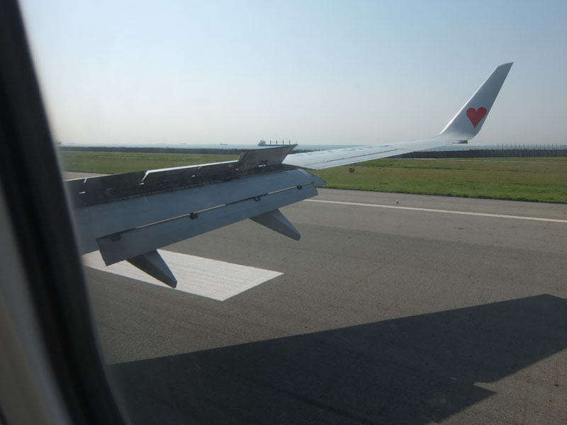 ANA機と同時平行着陸となる。(やや先行されているため写真には写っていない)