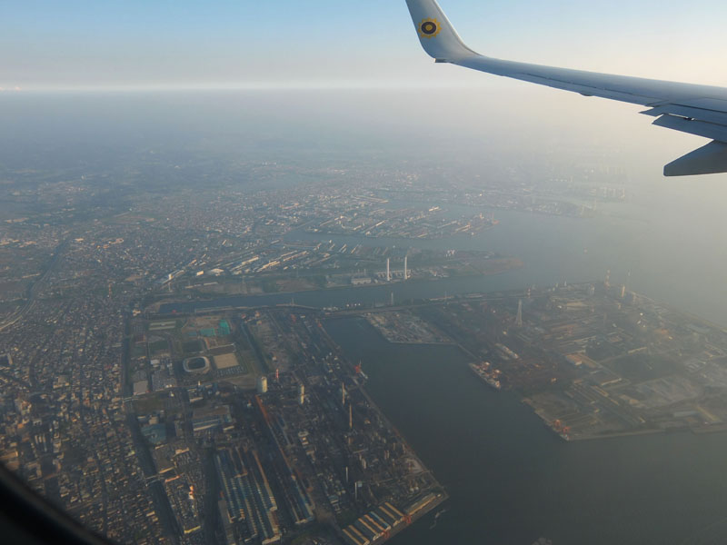 旋回して長崎空港へ。空港が見えるのが大変かっこいい。