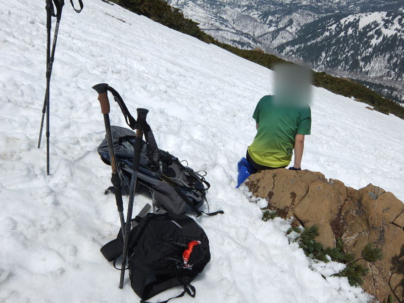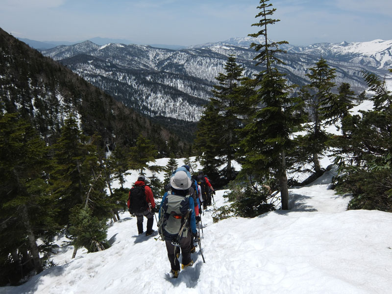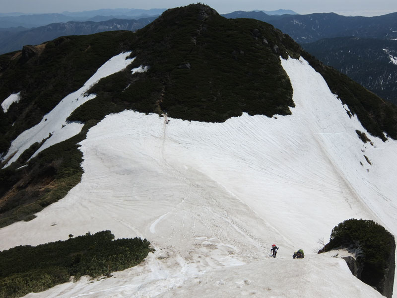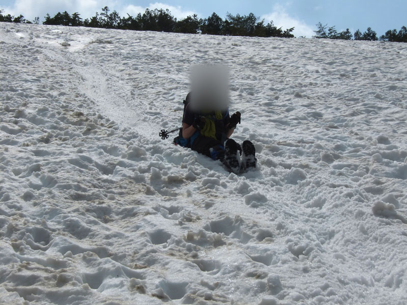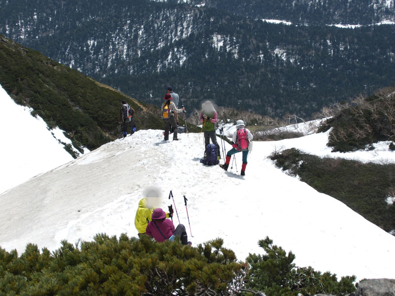 雪がかなりあり急勾配でなかなか怖い。ここはピッケル必携だ。