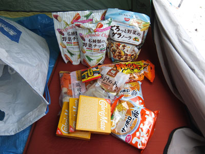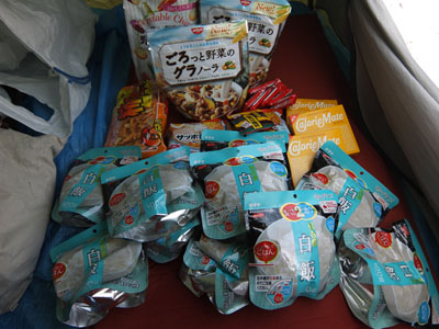今回搬入食料。5日分なので大量である。