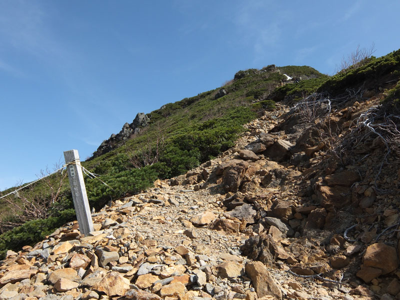 で、三角点があるほうのピーク(俎ー)へ。