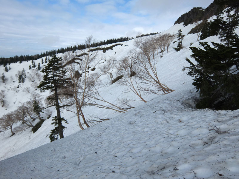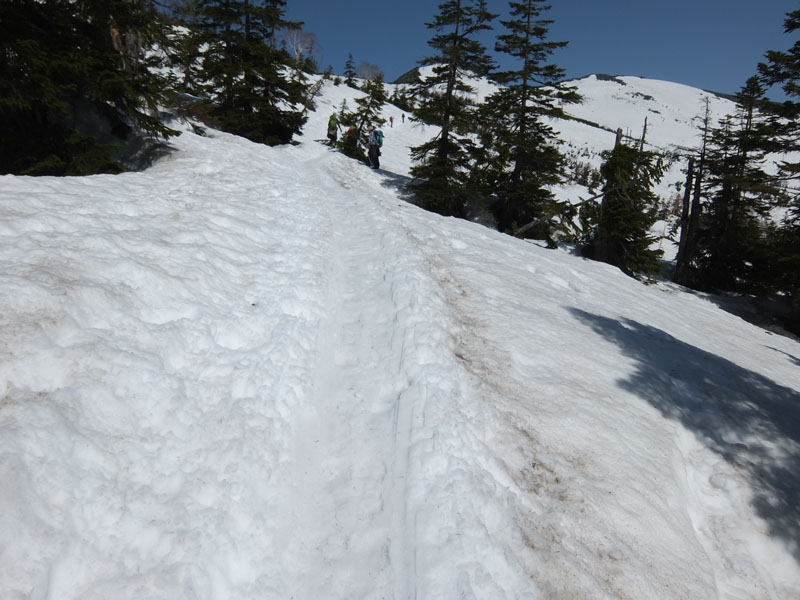 土石流で登山道が流出したが、雪があれば問題なく通過できる。