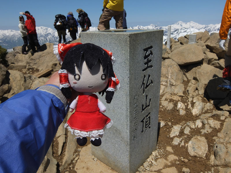 しばらくゆっくりしていると高崎の山岳会が登ってきたので写真をお願いする。
