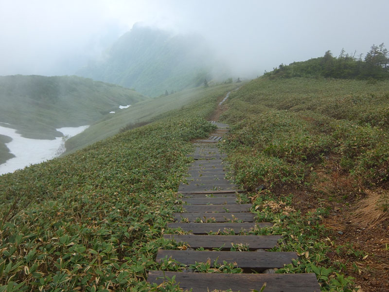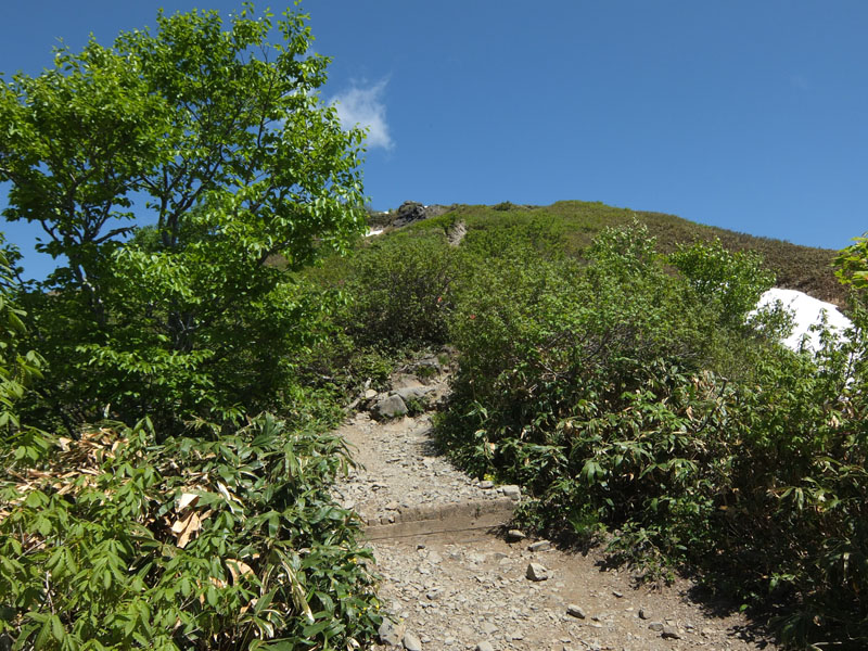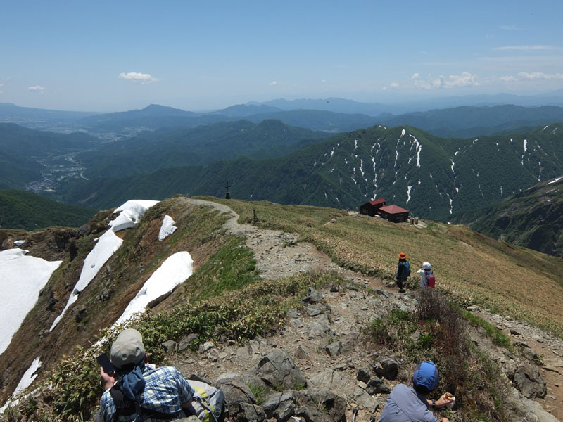 熊穴沢避難小屋を越えると森林限界となり更に暑くなってくる。