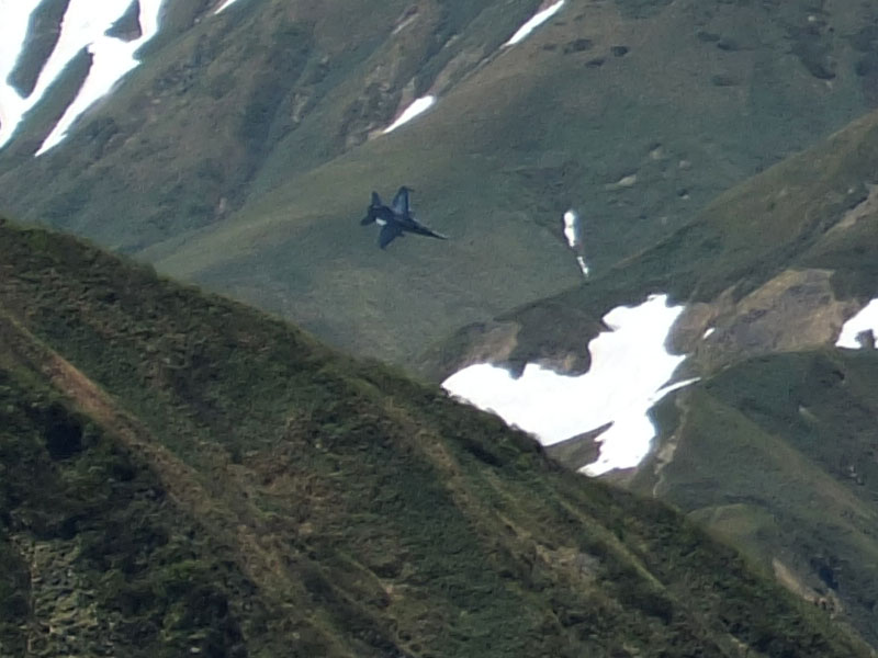 と、ここで戦闘機2機(米軍のF/A-18か?)が轟音とともに登場。
