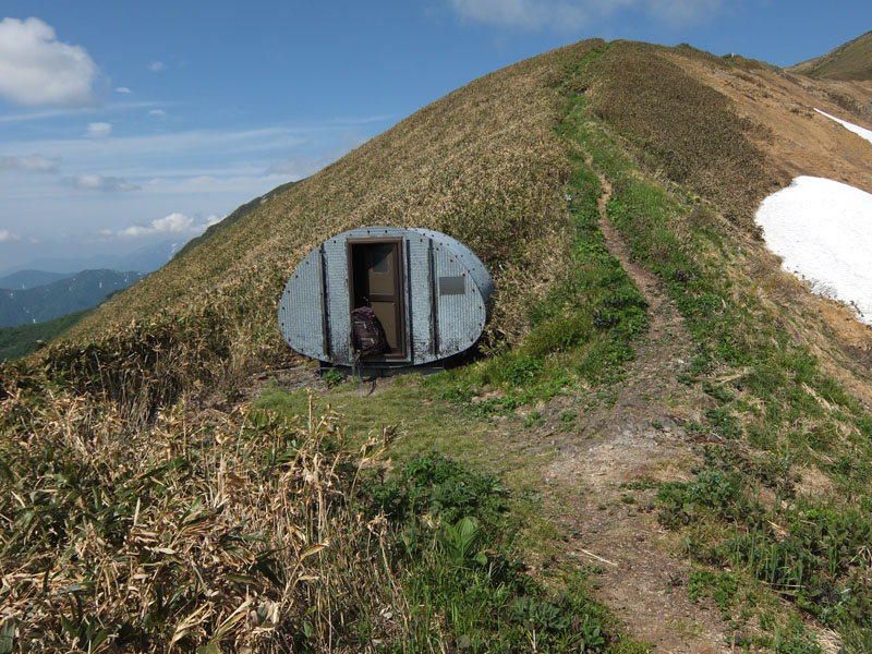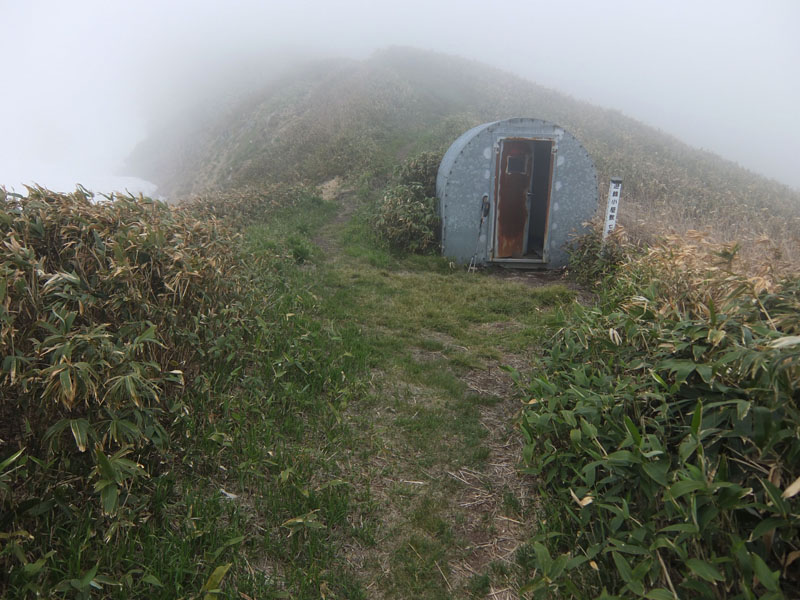 オジカ沢の頭避難小屋。小さいが頑丈で心強い。