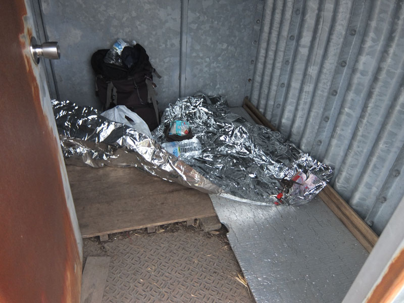 内部はかなり小さく、宿泊定員は2人。しかし頑丈で心強い。