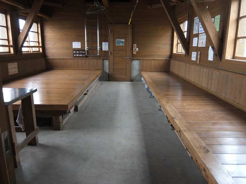 雨だとこの小屋に限らず雨漏りするためシュラフをぬらさないように要注意だな。
