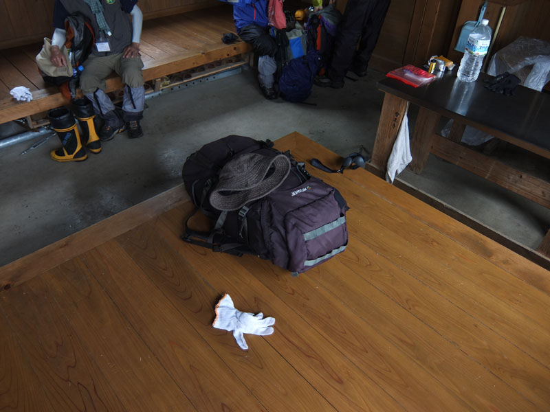 避難小屋でしばし休憩する。