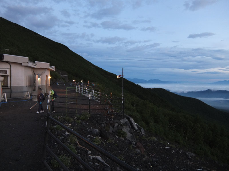 5合目に到着し、夕食にしてから、宿に入り仮眠する。