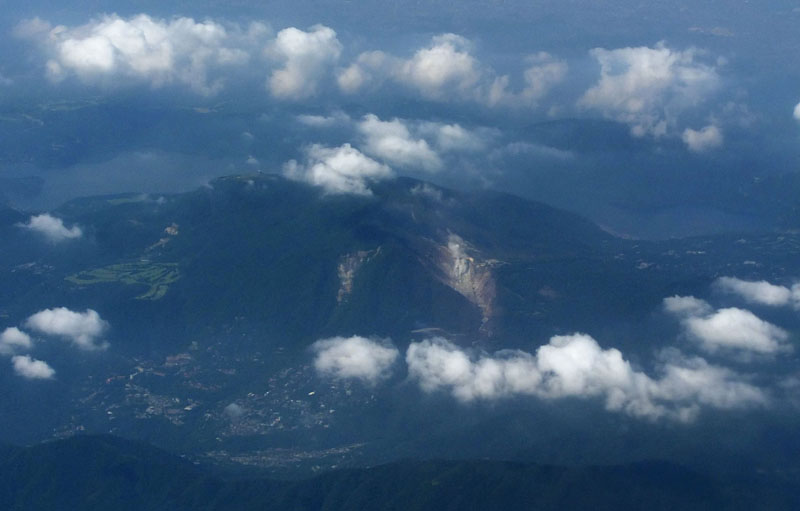 LEVEL3で噴火中の箱根山(大涌谷)。