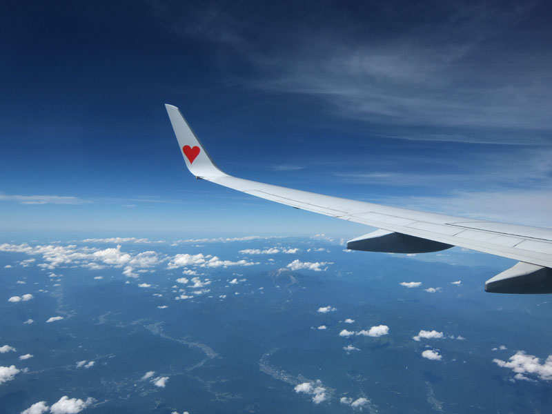 搭乗率は意外と高く8割くらい。神戸便と異なり観光客が多い。