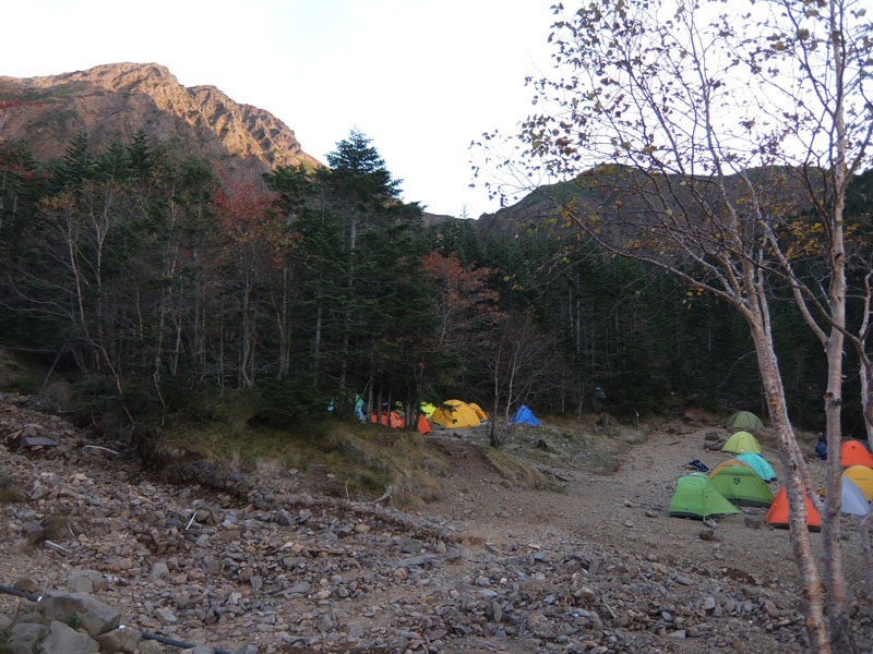 だいぶテントが多いのですみっこの快適な場所に設営する。