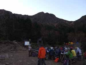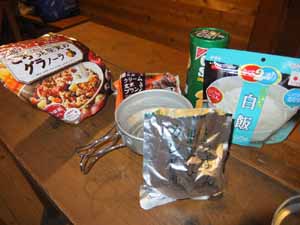 行者小屋では夕飯にする。