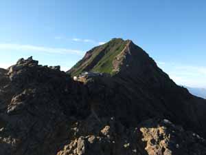 途中なかなか岩場があり要注意で、テント泊装備が重いこともあり慎重に。