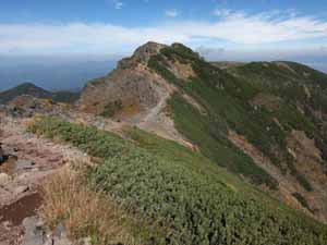 これから向かう硫黄岳方面。