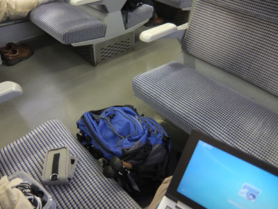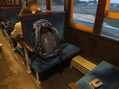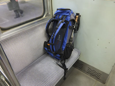 (ザック底面の汚れはふき取ったうえで座席においています)