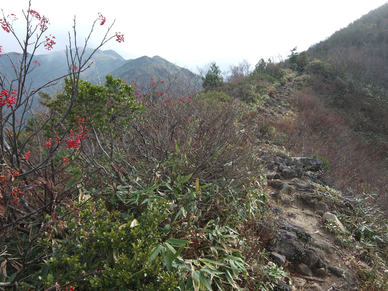 尾根に取りついて登るが、冬枯れで葉が落ちて展望がきくようになった。